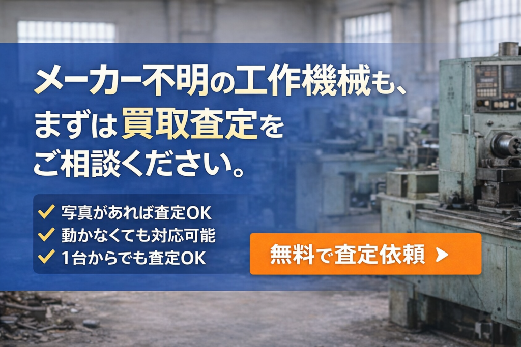 結論から言うと、メーカー不明の工作機械でも買取できるケースは十分にあります。メーカーや型式が分からないからといって、すぐに廃棄を決めてしまうのは早計です。この記事では、メーカー不明の工作機械が売れる理由、査定時に見られるポイント、後悔しないための判断方法を分かりやすく解説します。